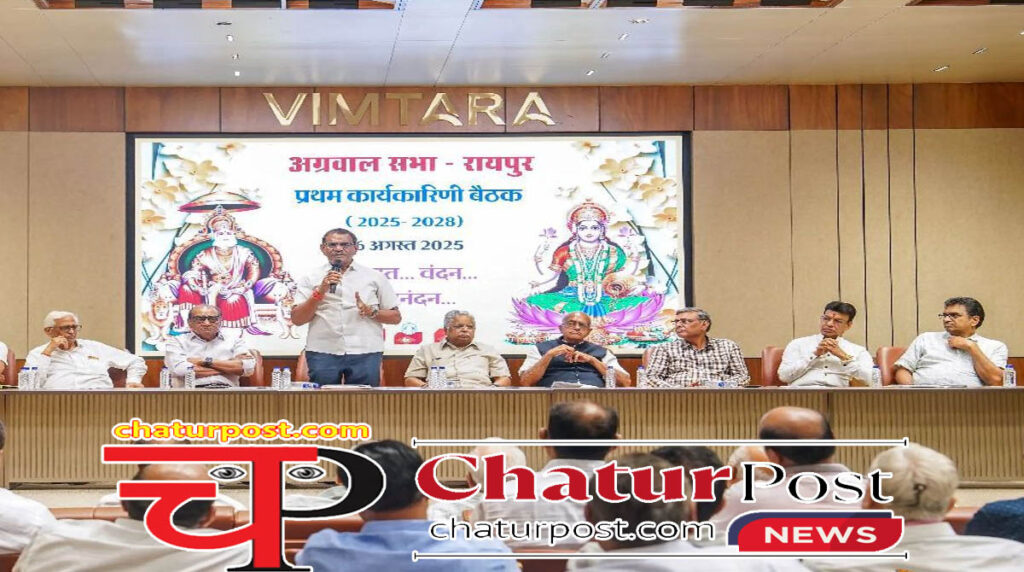Agrawal Sabha रायपुर। अग्रवाल सभा रायपुर की प्रथम कार्यकारिणी बैठक विमतारा सभागार शांतिनगर में अध्यक्ष विजय अग्रवाल जी की अध्यक्षता में सम्पन्न हुई । बैठक की शुरुआत विजय अग्रवाल, राजीव अग्रवाल अध्यक्ष सीएसआईडीसी, चतुर्भुज अग्रवाल, हनुमान प्रसाद अग्रवाल, सीताराम अग्रवाल, मनमोहन अग्रवाल, प्रेम अग्रवाल, योगी अग्रवाल द्वारा अग्रसेन जी की प्रतिमा पर माल्यार्पण कर किया गया।