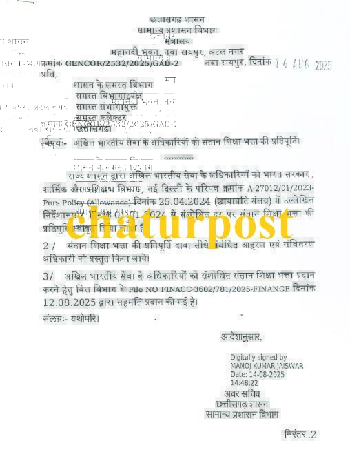 Allowance रायपुर। सरकारी अफसरों के लिए अच्छी खबर है। सरकार ने अफसरों के बच्चों की शिक्षा के लिए मिलने वाले भत्ता और छात्रावास सब्सिडी में बढ़ोतरी कर दी है। इस संबंध में सामान्य प्रशासन विभाग ने आदेश जारी कर दिया है।