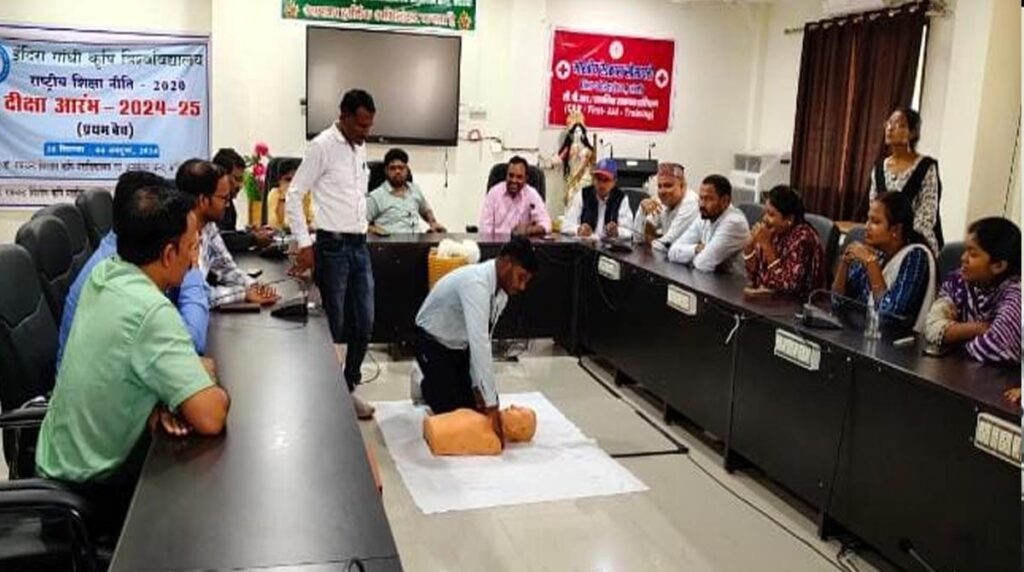CG बैकुंठपुर। स्व. डॉ. रामचन्द्र सिंहदेव कृषि महाविद्यालय एवं अनुसंधान केन्द्र, कोरिया में सीपीआर (Cardio-pulmonary Resuscitation) जागरूकता सप्ताह के अंतर्गत भारतीय रेडक्रॉस सोसायटी के सहयोग से जीवन-रक्षक कौशल के रूप में सीपीआर प्रशिक्षण कार्यक्रम अधिष्ठाता डॉ. डीके गुप्ता की अध्यक्षता, डॉ. मनीष कुमार, जिला अस्पताल कोरिया व रेडक्रॉस प्रभारी तारा मरावी के विशिष्ट आतिथ्य में संपन्न हुआ।