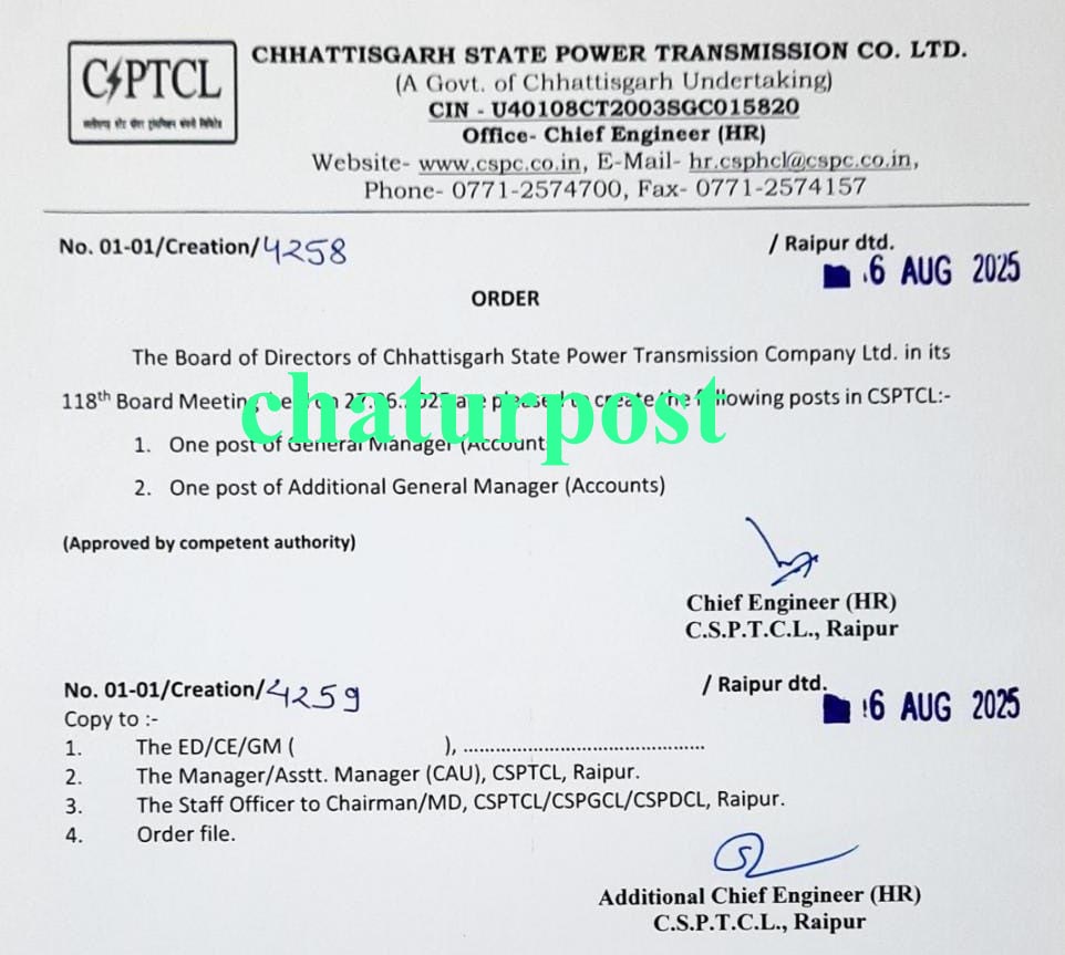 होल्डिंग कंपनी की जिम्मेदारी संभल रही ट्रांसमिशन कंपनी के बोर्ड (BOD) की 118वीं बैठक में एक नए पद को मंजूरी दी गई। बोर्ड की यह बैठक 27 जून 2025 को हुई थी। इस बैठक में अकाउंट (Account) दो नए पदों को मंजूरी दी गई। इसमें एक महाप्रबंधक यानी जनरल मैनेजर (GM) और दूसरा एडिशनल जनरल मैनेजर का पद शामिल है।