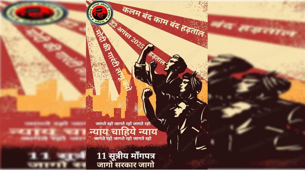 फेडरेशन की तरफ से जारी एक पोस्टरों में आंदोलन को सफल बनाने का आह्वान किया गया है। एक पोस्टर में ‘जागते रहो जगाते रहो’ के साथ ‘न्याय चाहिए, न्याय’ नारा लिखा है। दूसरे पोस्टर में मोदी की गारंटी लागू करो का नारा बुलंद किया गया है। इन पोस्टरों में मोदी की गारंटी लागू करो, 22 अगस्त को कलम बंद, काम बंद हड़ताल का नारा भी है।