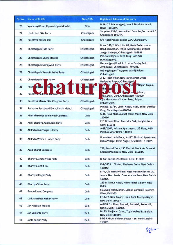 Political  रायपुर। भारत चुनाव आयोग ने देश की 334 राजनीतिक पार्टियों की मान्‍यता समाप्‍त कर दी है। इनमें छत्‍तीसगढ़ की भी नौ राजनीतिक पार्टियां शामिल हैं। चुनाव आयोग के इस फैसले से इन पार्टियों को तगड़ा झटका लगा है।
