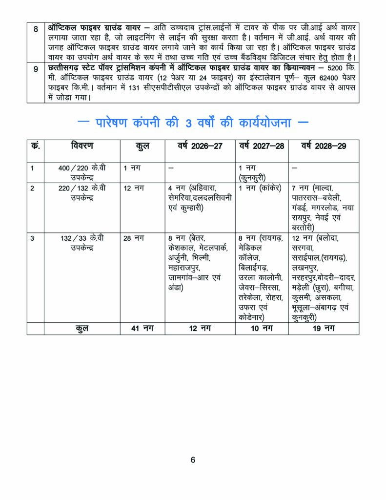 छत्तीसगढ़ स्टेट पॉवर कंपनीज की 3 वर्षों की कार्ययोजना –