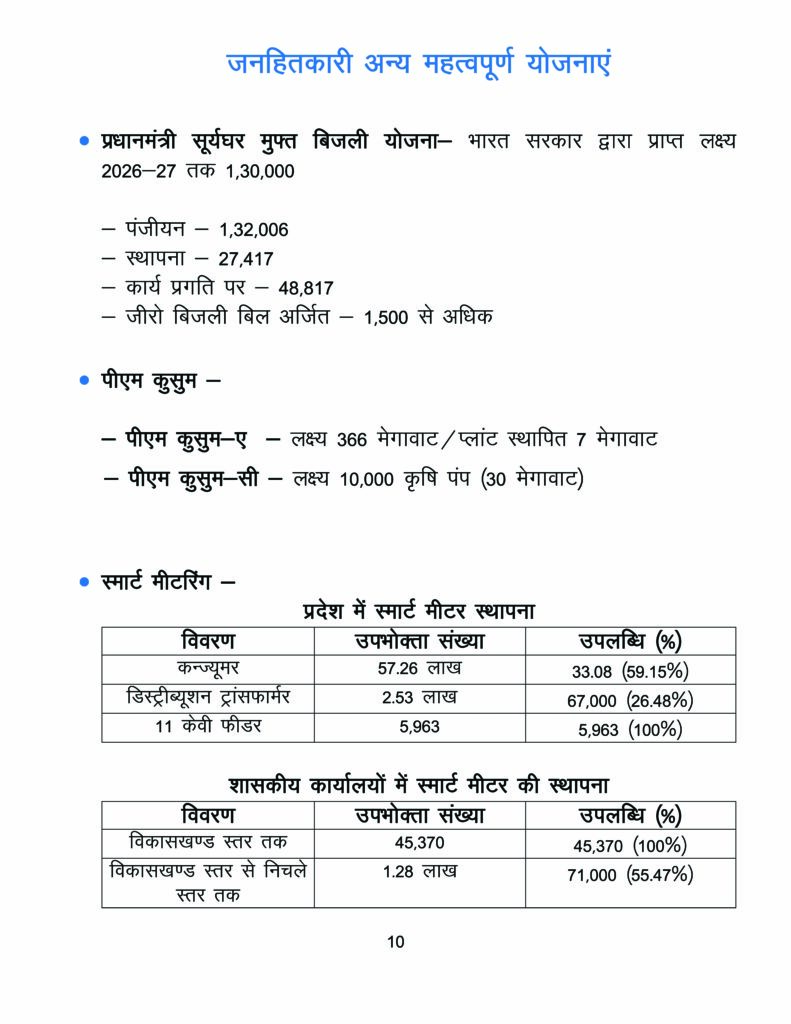 बीपीएल कनेक्शनों को निःशुल्क बिजली 30 यूनिट प्रतिमाह मुफ्त बिजली / लाभान्वित उपभोक्ता 14.99 लाख / सब्सिडी राशि 496 करोड़ रु. ।